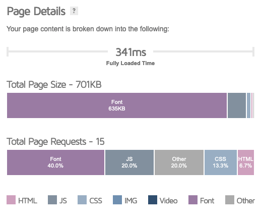According to GTMetrix, Full Load Time for a cached page is 341ms compared to 760ms with default cache settings and Time to Interactive of 273ms against 489ms.
