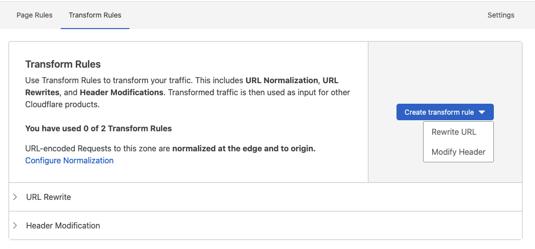 URL rewrites, header modification, even HTTP GET query string manipulation is available at the domain menu section. The only downside is you can have only three Page Rules and two Transform Rules for a free tier.
